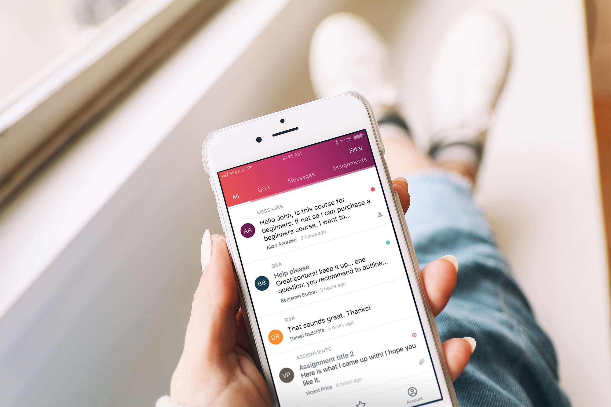 As a global platform, Udemy strives to support as many device types as possible. We designed the new instructor side for iPhone, iPad, Android phone, and Android tablet - all in portrait orientation. Since the main action instructors will take in the app is replying to messages and posts, we selected portrait orientation as the best format to display a feed-like list of inbound student questions.